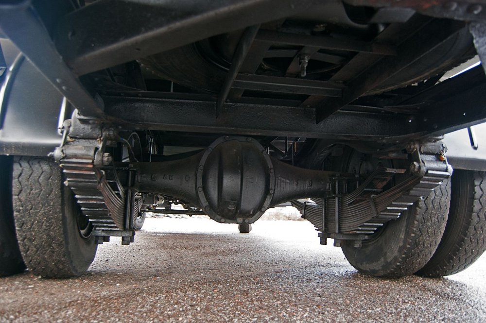 Профиль, конечно, вызывает уважение. На такой раме можно было бы построить тепловоз, но получился грузовик. Но самое интересное в ней – не монументальность, а очень сильные изгибы над задним мостом. Да, для легковушек это дело привычное, но не для грузовиков. Где суровая прямота наших ЗИСов? У французов такой прямоты нет. Задний мост получился сильно утопленным в раму, отчего сама машина стала сантиметров на 20-30 ниже других грузовиков этого класса времён Второй мировой. С одной стороны, это хорошо для центра тяжести, но для грузовика важнее существенное снижение погрузочной высоты. Так что такая рама – это очень здорово. Но ведра чудесных лягушек хватило на большее, и рама – это ещё не всё хорошее.