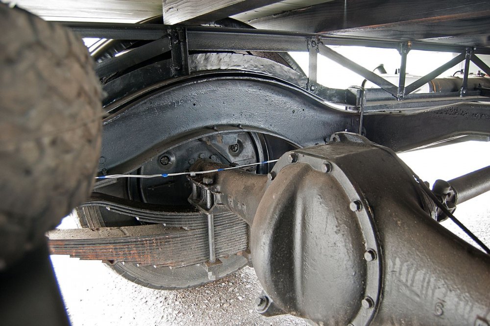 Удивительно, но в трансмиссии ничего необычного нет. Обычная четырёхступенчатая коробка передач, обычный карданный вал, обычный редуктор заднего моста. Правда, всё это тоже характерно-монументальное. Но всё-таки обычное. А вот тормоза – нет.