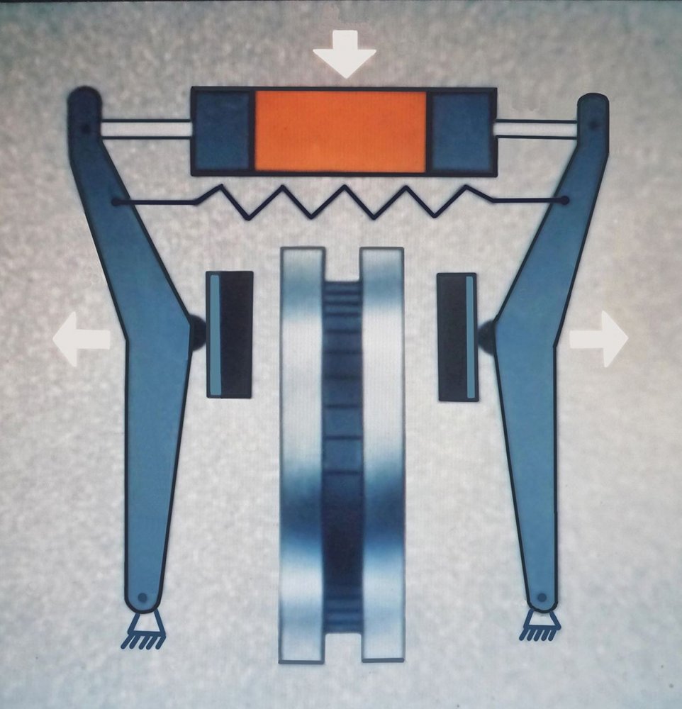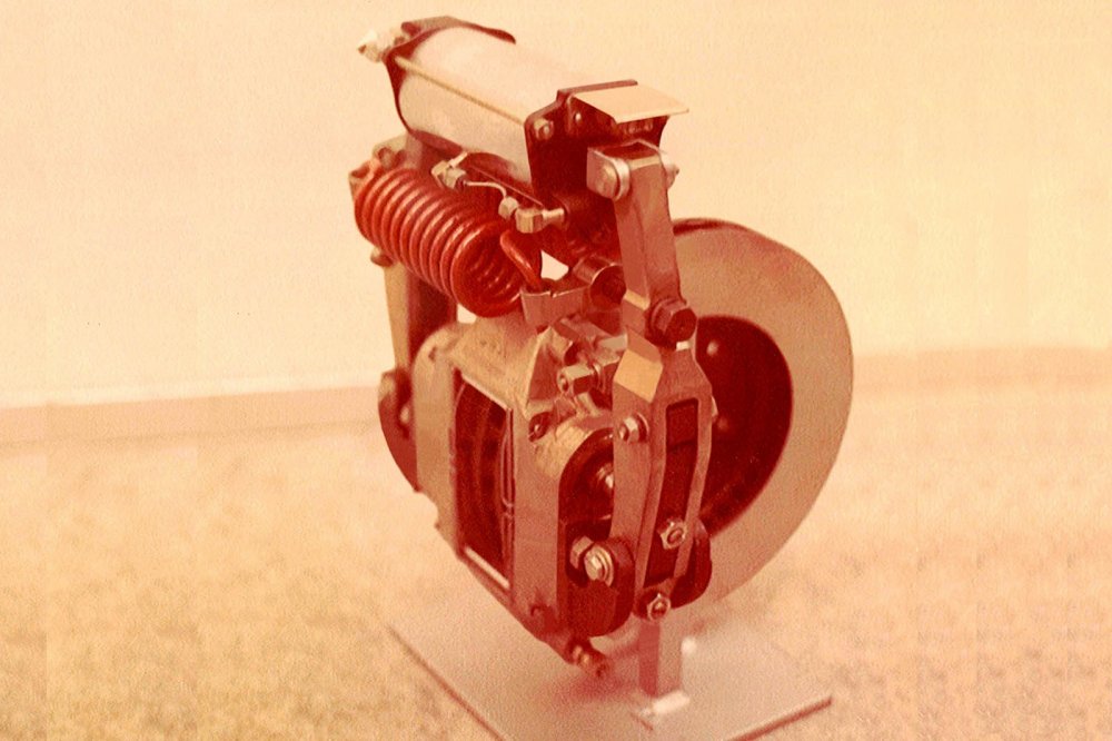 В середине 1980-х годов в СКБ под руководством Михаила Сугробова, который был одним из создателей тормозов первого поколения, приступили к разработке дискового тормоза второго поколения, в котором исключался упомянутый недостаток. Главными элементами конструкции стали расположенные внутри прорезей рычагов привода тормоза храповики, каждый из которых снабдили упорным винтом со сферической головкой и двумя проушинами с фигурными прорезями. В верхних частях прорезей рычагов находятся собачки, входящие в зацепление с храповиками. Зазор между сферическими головками упорных винтов и штоками обеспечивают пластинчатые пружины.