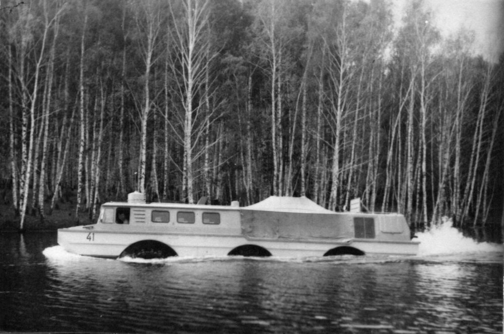 Чтобы все это хозяйство разместить на шасси, да еще сделать его плавающим, пришлось укрупнить и утяжелить вездеход, что требовало увеличения мощности мотора. Этого же требовали и широкие условия предполагаемой эксплуатации: машина должна была ездить по пескам и по снежной целине, желательно с высокими скоростями.