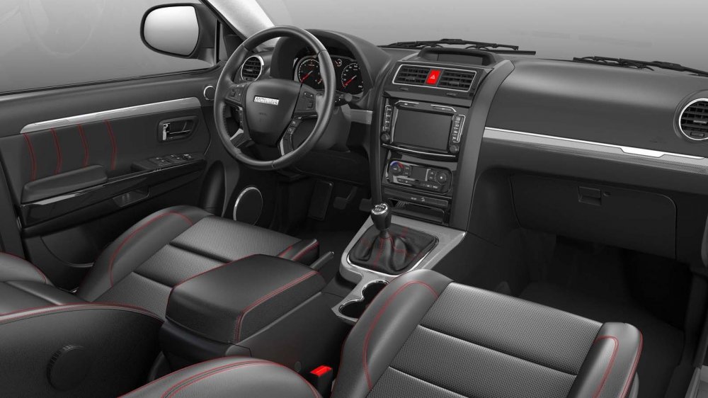 Отметим, люксовую комплектацию отличают отделка салона чёрной кожей с красной прострочкой, электропривод водительского сиденья с регулировкой по высоте, наличие мультимедийной системы с шестью динамиками и задних датчиков парковки.