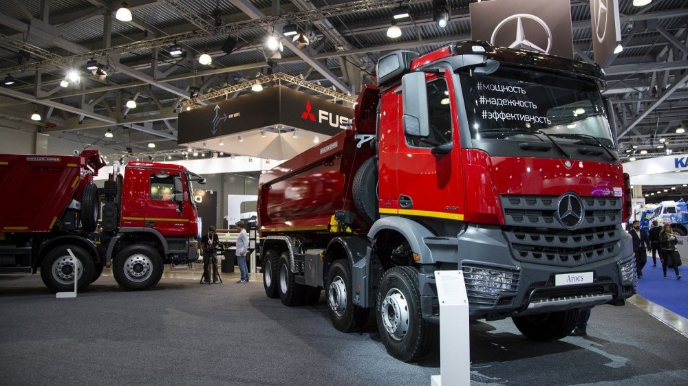 Идея была очень удачной. Это тягач для магистральных перевозок, с двумя баками, с высокой кабиной, ровным полом. Этот автомобиль мы также не предлагали флитовым клиентам — только в ритейл. Партии по 150 машин разлетелись в течение месяца. На выставке также были представлены два самосвала. Один приспособлен для эксплуатации в условиях севера, и он тоже рассчитан на ритейл, то есть на относительно небольшие строительные фирмы.