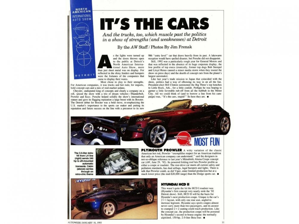 Как и было запланировано, в январе 1993 года Prowler представили на североамериканском мотор-шоу в Детройте. Сказать, что эпатажный хот-род привлек внимание к стенду – не сказать ничего. Ведь одно дело – хот-роддерская тусовка, где подобные кастомы всегда выставляют сотнями экземпляров, и совсем другое – обычная автомобильная выставка.