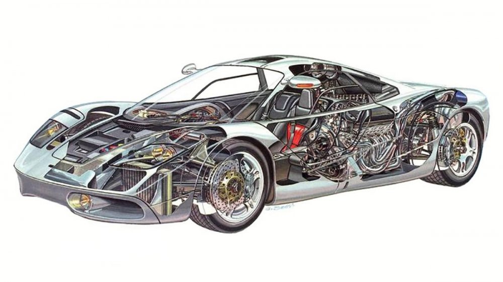 Мюррей действительно хотел добиться идеального соотношения массы и мощности – то есть одна лошадиная сила на каждые два килограмма при тонне «живого» веса. Хотя реальный суперкар оказался немного тяжелее (1140 кг), однако и его двигатель развивал 627 л. с.
