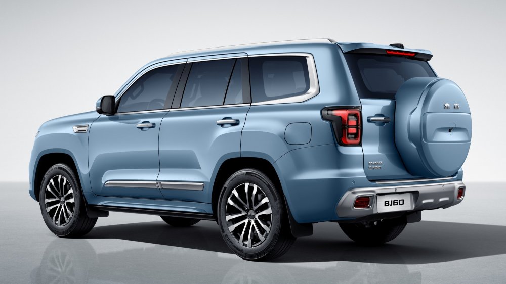 По сути, BJ60 — первая осмысленная попытка BAIC сделать по брендом Beijing самобытный SUV, хотя в его пропорциях есть что-то Toyota Land Cruiser, а передок, как и у прочих моделей Beijing, беззастенчиво импровизирует на тему Jeep. Светодиодные контуры фар образуют единый визуальный ряд со светящимися «подковами» радиаторной решётки, узенькие противотуманки зрительно увеличены за счёт светодиодных ободков. На корме видим распашную багажную дверь и висящую на ней полноразмерную запаску в кофре — старомодное решение, выдающее в BJ60 классический внедорожник. Штатные колёса — 20-дюймовые.