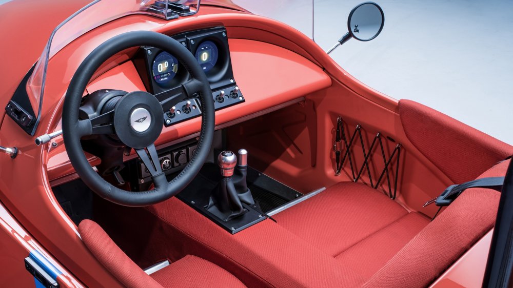 Кокпит стал чуть просторнее, заметно улучшилась эргономика, руль регулируется по высоте и вылету, зона в районе ног отапливается, но крыши нет даже в виде опции — только парковочная накидка, закрывающая салон на уровне верхнего края сидений. Вся обивка и отделка передней панели сделаны водонепроницаемыми. Щиток приборов теперь полностью электронный, стилизованный под авиационный. Для мелочей предусмотрены сетки с внутренней стороны бортов (там, где у обычных машин находятся дверные карты, но у Morgan Super 3 дверей нет), а для гаджетов и бутылок есть специальные опциональные держатели на передней панели.