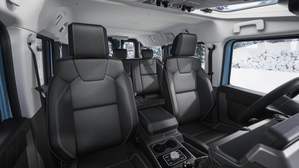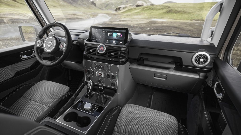 Grenadier Fieldmaster преподносится как более универсальна и комфортная машина: здесь в базу включены литые 17-дюймовые колёса, кожаная обивка салона, два прозрачных люка в крыше, подогрев передних сидений и текстильные коврики.