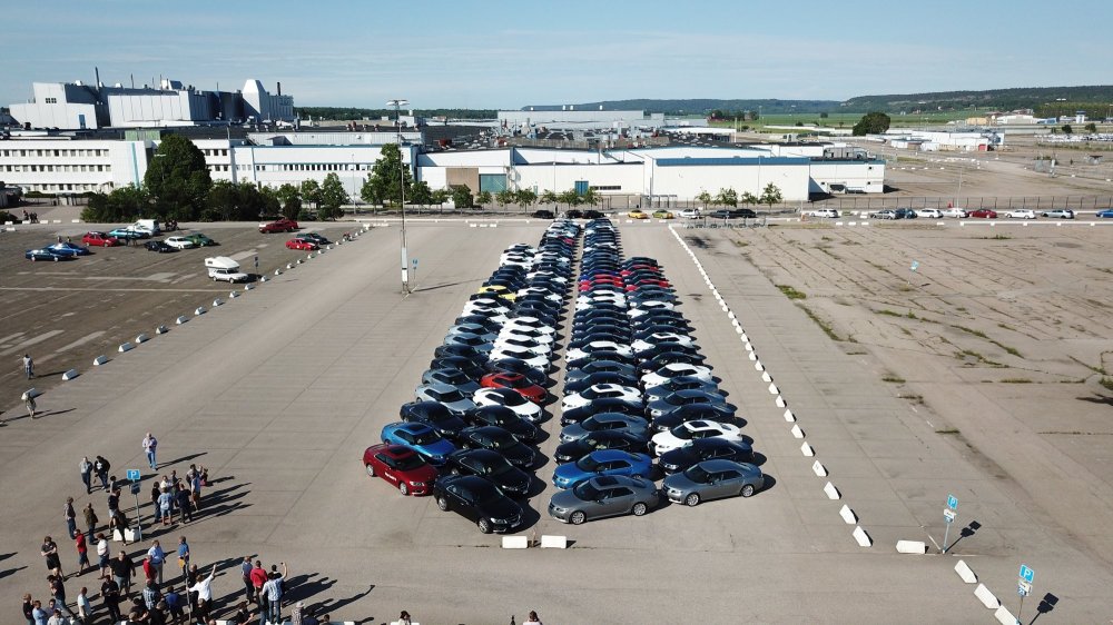 В доковидные времена парковка у завода NEVS в Тролльхеттане использовалась для слёта владельцев Saab.