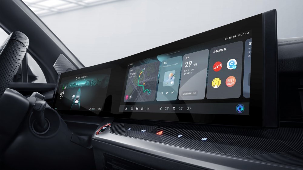 Салон вообще полностью новый, вплоть до сидений и дверных карт. Передняя панель стала более лаконичной и премиальной на вид. Вертикально ориентированного мультимедийного экрана больше нет, вместо него теперь объединённое горизонтальное двухэкранное «табло» (оба экрана имеют диагональ 12,3 дюйма). Большое внимание уделено текстурам отделочных материалов, а селектор АКП теперь напоминает ювелирное изделие. В оснащении заявлена высококлассная аудиосистема Bose с цветомузыкой (доступны 256 цветов).