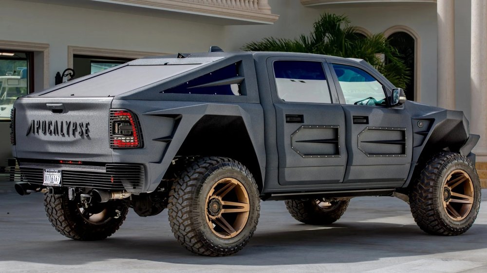 Компания Apocalypse Manufacturing из города Форт-Лодердейл (штат Флорида) специализируется на изготовлении монструозных трёхосных конверсий серийных пикапов и внедорожников (в основном американского происхождения), их стиль и целевая аудитория примерно такие же, как у компании Rezvani Motors из штата Калифорния, но цены — более доступные.