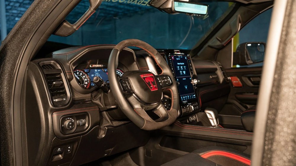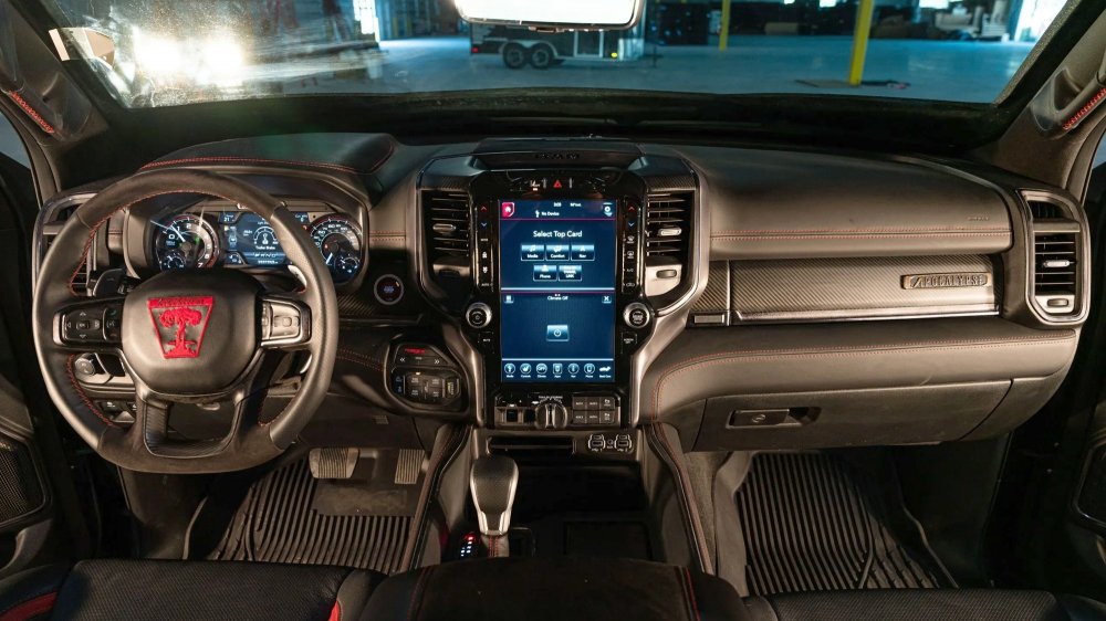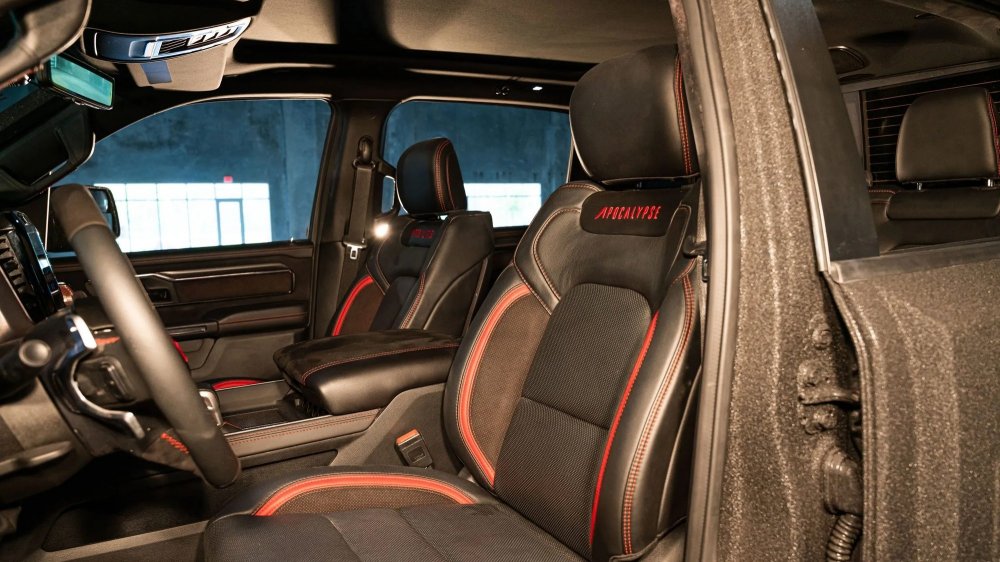 Стоковый салон заново обшит износостойкой грубой кожей и щедро украшен фирменными логотипами Apocalypse. Оснащение салона в основном такое же, как у исходного Ram 1500, но по желанию заказчика Apocalypse готова снабдить Super Truck дополнительными «наворотами». Начальная цена Apocalypse Super Truck составляет 159 000 долларов.