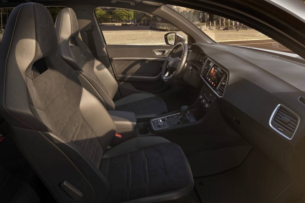 Есть еще одна обновка – иной задний диффузор. Как и раньше, Cupra Ateca по умолчанию имеет светодиодную оптику, спортивные ковшеобразные кресла, климат-контроль, мультимедиа-систему с экраном диагональю 9,2 дюйма и семь подушек безопасности. Для модели также предусмотрены (уже в зависимости от исполнения) 19- или 20-дюймовые колеса, адаптивная подвеска DCC и тормоза Brembo.