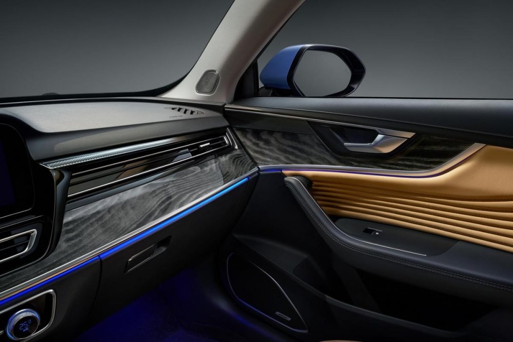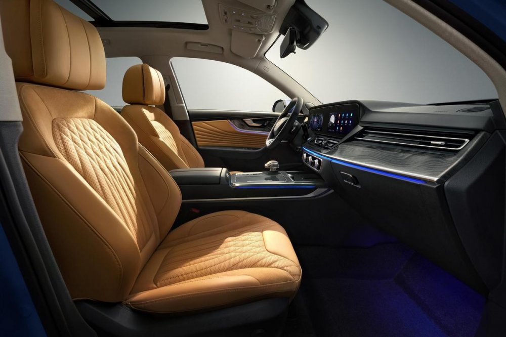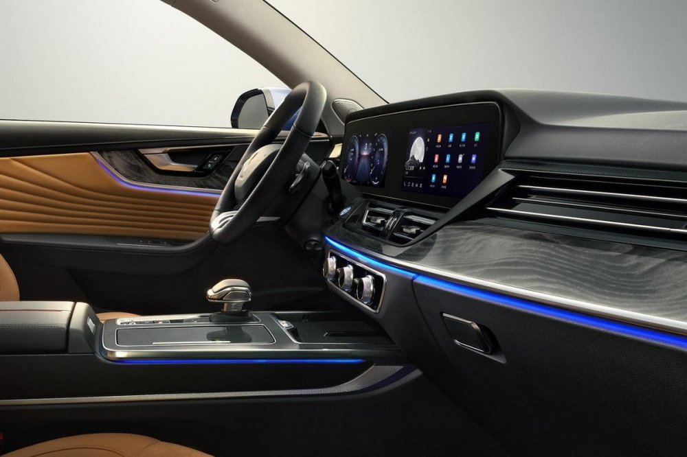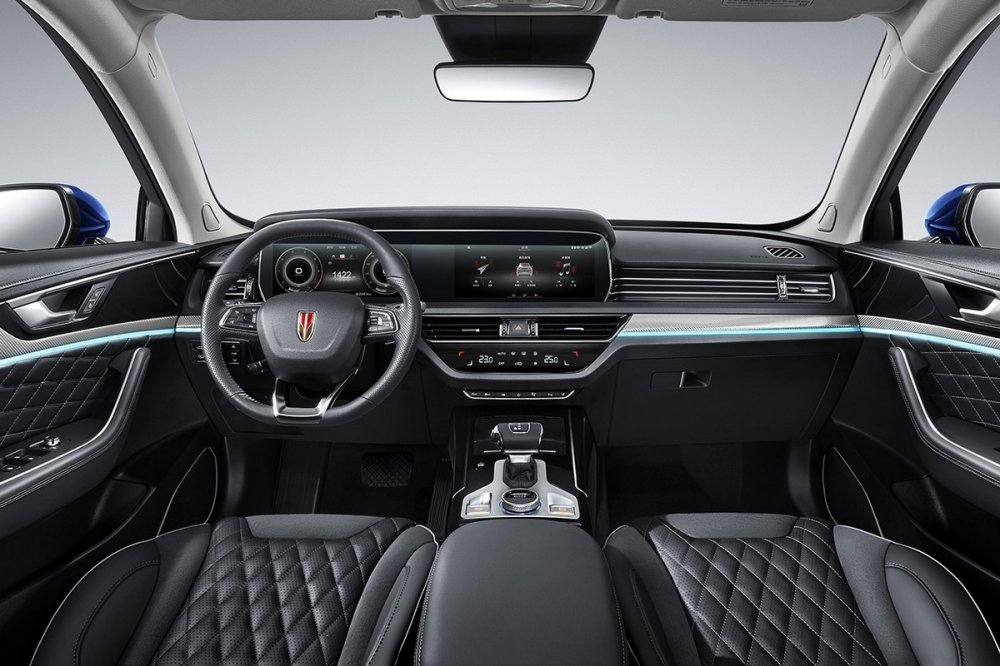 В салоне – переделанные передняя панель и центральный тоннель. Еще заменили блок управления климат-контролем: у него отныне три шайбы с интегрированными экранчиками (прежде был сенсорный пульт). Hongqi HS5 сохранил табло, то есть объединенные виртуальную приборку и тачскрин мультимедиа-системы, но сам корпус – новый.