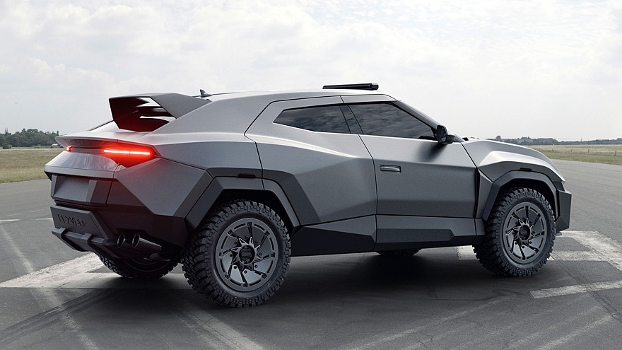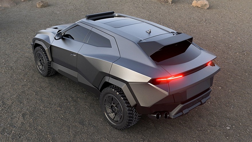 Кузов исходного Lamborghini Urus изначально имеет довольно угловатый облик, но Rezvani создала ещё более мускулистую углепластиковую оболочку или, если угодно, костюм из доспехов: заметно расширена колея, распухли колёсные арки и капот, уменьшилась площадь остекления, на багажной двери установлено антикрыло, на крыше появилась светодиодная «люстра». Новые 22-дюймовые колёса с боевыми звёздочками на ступицах обуты в 33-дюймовые «зубастые» шины, рассчитанные на тяжёлое бездорожье.