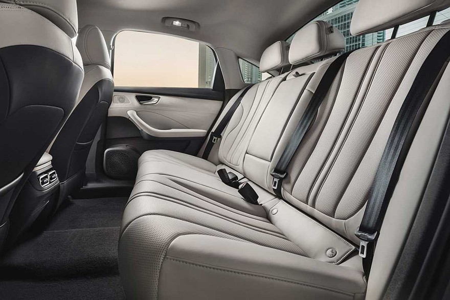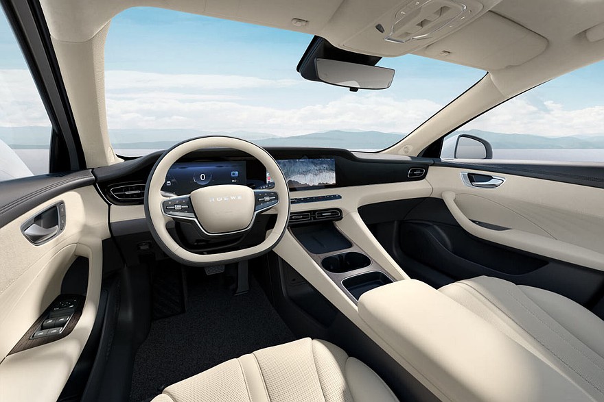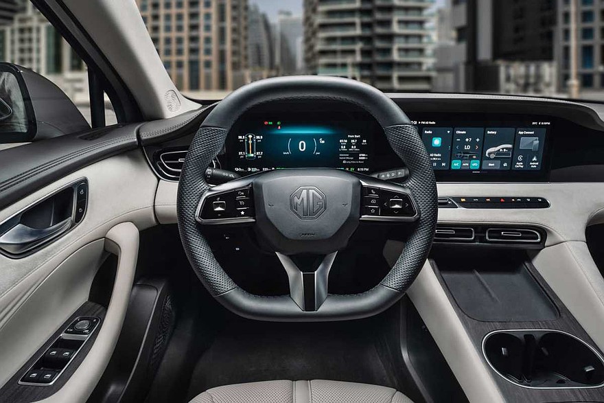 В салоне появился другой руль. Как и в Китае, ближневосточный MG 8 PHEV имеет объединенные под козырьком экраны приборки (10,25 или 12,3 дюйма) и мультимедийной системы (12,3 дюйма). Седан MG доступен в двух комплектациях. Базовая версия – это климат-контроль, камера заднего вида и круиз-контроль. В арсенале более дорогого исполнения значатся вентиляция водительского кресла, беспроводная зарядка и камеры кругового обзора.