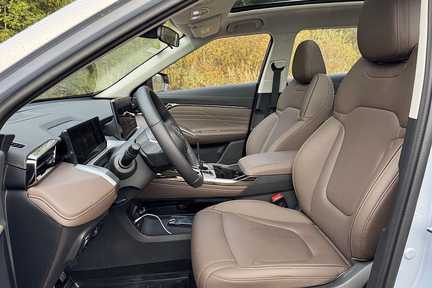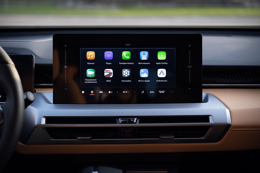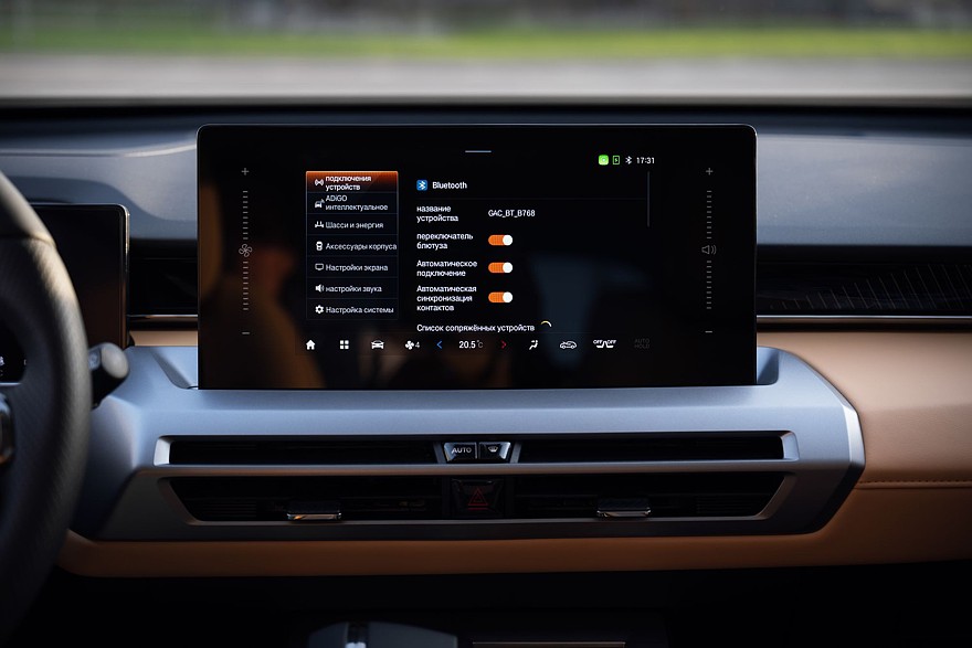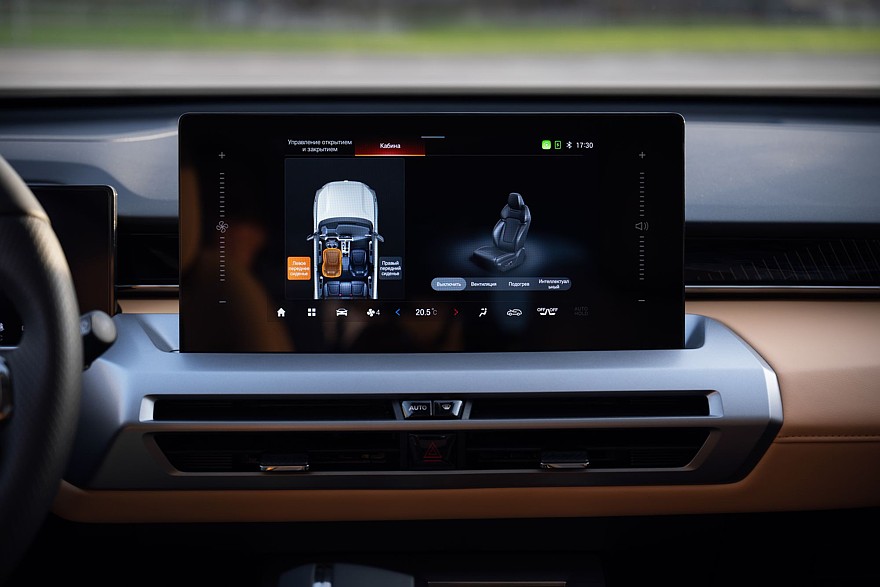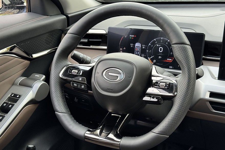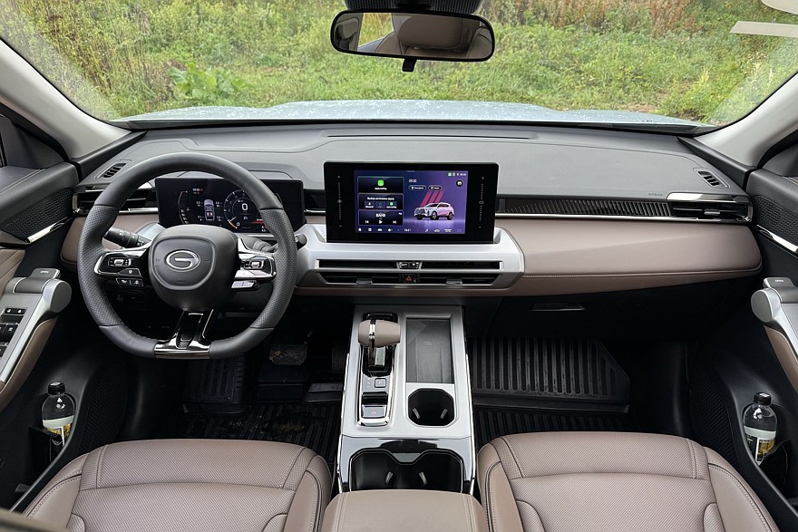 Внутри перемен чуть больше, хотя из видимых глазу – разве что панорамная крыша. Увы, она не открывается. Передние кресла теперь снабжены не только подогревом, но и вентиляцией, к Apple CarPlay добавился ещё и Android Auto, а у тяжеленной двери багажника наконец-то появился электропривод. Правда, шторки в багажнике нет, хотя места под крепления на боковинах есть. GAC обещает добавить её позже как аксессуар. Оттенков экокожи предлагается три на выбор: чёрный, коричневый и бежевый.