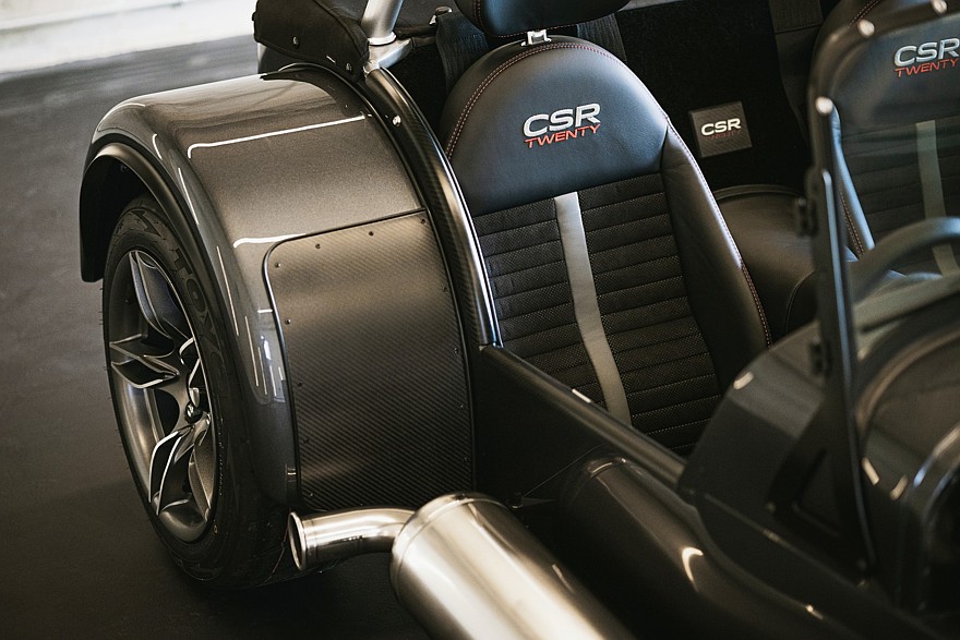 Опций при заказе Caterham Seven CSR Twenty немного: можно выбрать различные варианты цветографического оформления, расширенную отделку углеродной тканью наружных деталей кузова (в том числе задних крыльев и дуги безопасности), заниженный пол салона, быстросъёмный руль и выключатель массы.