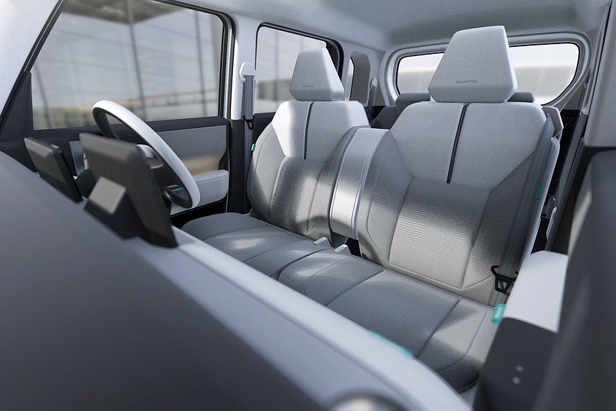 Daihatsu также показала в рамках Japan Mobility Show шоу-кар под названием K-Vision. Этот концептуальный кей-кар, базирующийся на платформе DNGA, оснащается подзаряжаемой гибридной силовой установкой. Автомобиль имеет двухобъёмный кузов, светодиодную головную оптику с «O-образным» рисунком (и вторящие фарам фонари на корме), большой воздухозаборник, обычные наружные зеркала и распашные двери. Официальной информации о серийных перспективах этой новинки пока нет, но выглядит она практически готовой к производству.