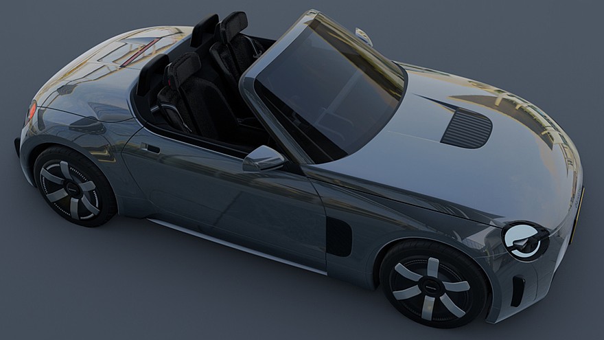 В салоне двухместного родстера можно увидеть круплое трёхспицевое рулевое колесо с красной «нулевой отметкой», а за ним на передней панели расположен изогнутый дисплей, исполняющий роль виртуального щитка приборов. Привычного тачскрина информационно-развлекательной системы нет, но есть панель с кнопками для управления рядом функций автомобиля. Дверные ручки с внутренней стороны заменены на тканевые петли.