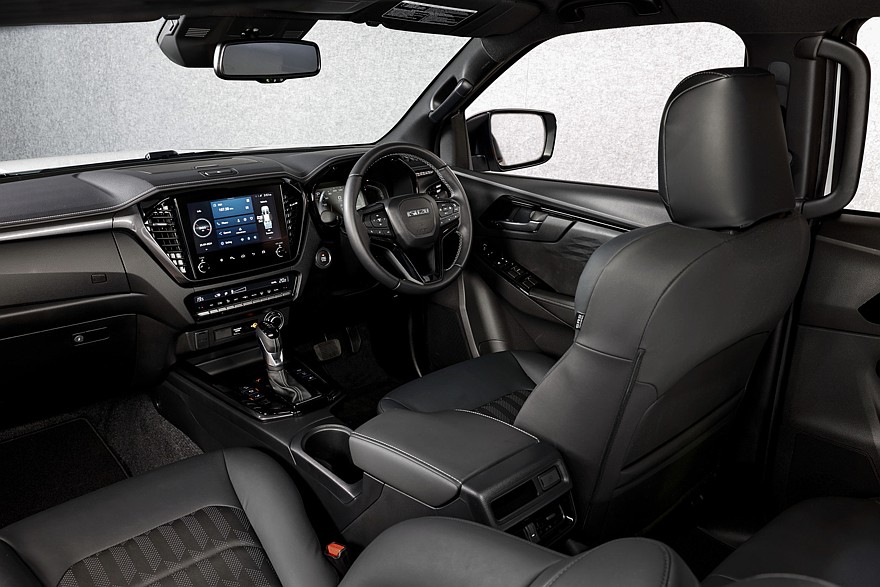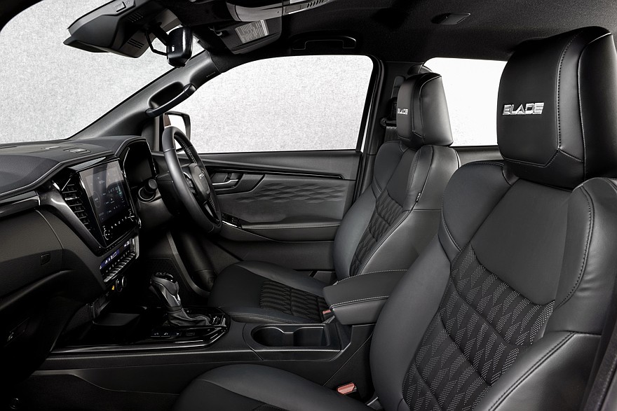 В салоне отличий почти нет, только наличие названия версии, которое можно увидеть на подголовниках, напольных ковриках и порогах. Ещё этот пикап получил модернизированную подвеску. Так, D-Max Blade снабдили 35-миллиметровыми двухтрубными амортизаторами MTV спереди. Дорожный просвет у новой топовой версии стал больше на 29 мм (по сравнению с обычным грузовиком) и теперь составляет 244 мм.