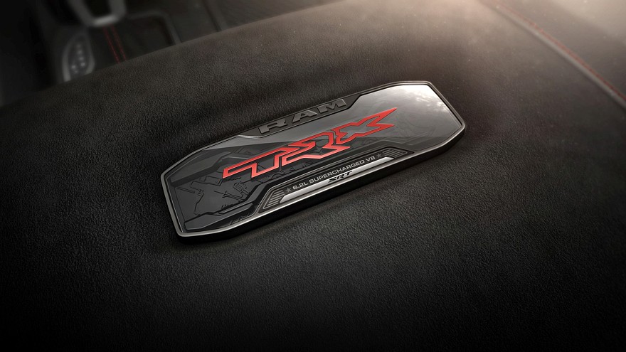 Что до аббревиатуры TRX, то она изначально не обозначала ничего определённого: имя для топ-версии пикапа Ram 1500 выбиралось в ходе мозгового штурма за очень ограниченное время, прежде буквами TRX обозначался оффроудный пакет для пикапов Ram, эту комбинацию просто взяли из архива, чтобы не тратить время и деньги на регистрацию чего-то нового. Версия о том, что за аббревиатурой TRX стоит Tyrannosaurus Rex (считается, что он был самым опасным динозавром-хищником), не является официальной, но разработчикам она очень понравилась, они теперь сами называют масл-трак TRX «высшим хищником» и в привязке к его возвращению на рынок даже переработали соответствующую эмблему — теперь перед буквами TRX красуется голова того самого динозавра.