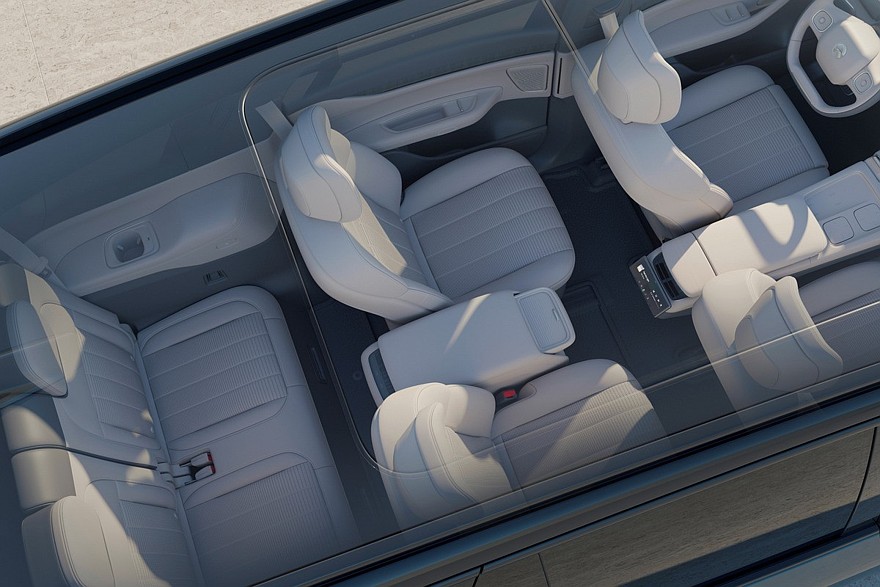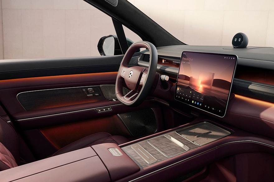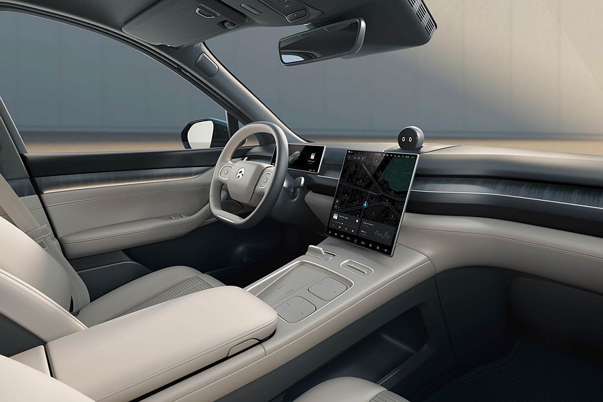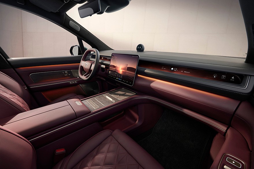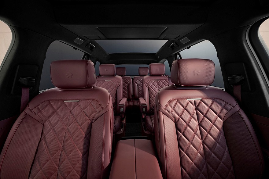 Еще появился трехспицевый руль (у прежнего ES8 – двухспицевый), плюс заменили центральный тоннель и карты дверей. Отвечающие за настройки кресел кнопки отныне расположены непосредственно на дверях. Как и раньше, Nio ES8 будет доступен в шестиместном исполнении. Разумеется, сиденья имеют подогрев, вентиляцию и массажер. В подголовник водительского сиденья встроены динамики. А в потолке спрятан отдельный экран для задних седоков.