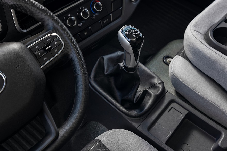 Испытать все режимы при полной нагрузке у нас возможности не было, однако поведение порожнего автомобиля они меняют не очень сильно. Хотя нельзя исключать того, что их влияние, особенно — экономичного режима, проявляется на больших дистанциях, нежели нам удалось преодолеть во время теста. А вот что сразу заметно очень ярко — это точная работа механической коробки. Передачи переключаются четко, ходы ручки недлинные и понятные, легко прогнозируемые, будто на легковом автомобиле. Несмотря на отсутствие блокиратора, шанс спутать первую передачу и задний ход минимальны: даже не очень опытный водитель легко различит положение и выберет правильное направления движения рычага.
