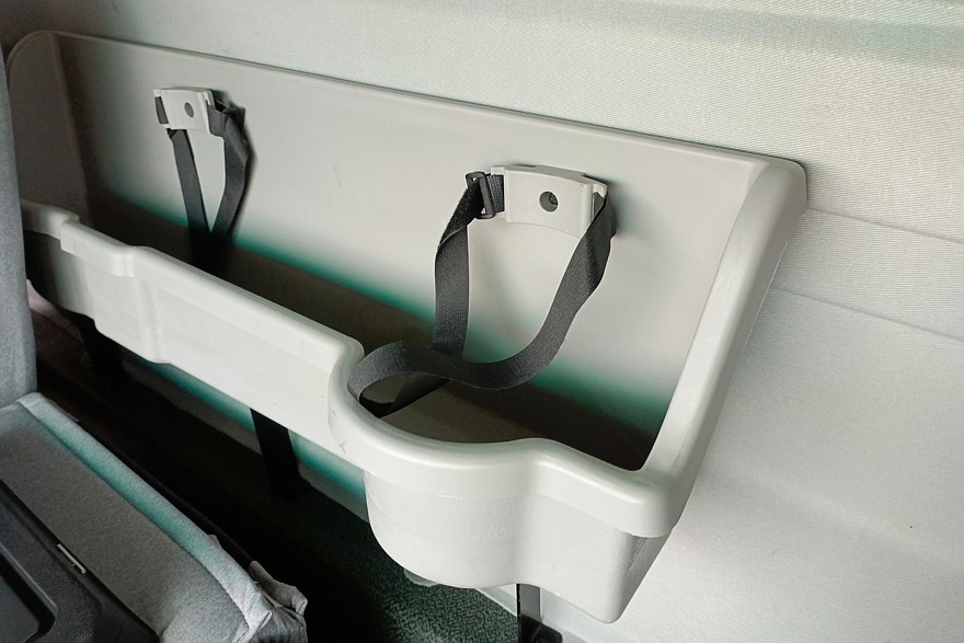 В спинке среднего сиденья с обратной стороны присутствует органайзер. В него удобно складывать документы даже в формате А4, с которым и приходится чаще всего иметь дело при перевозке грузов. Также их можно будет положить в полку под потолком перед водительским сиденьем или в полку за сиденьями. Последняя имеет не сплошную плоскую форму, а с двумя выемками под довольно объемные бутыли.