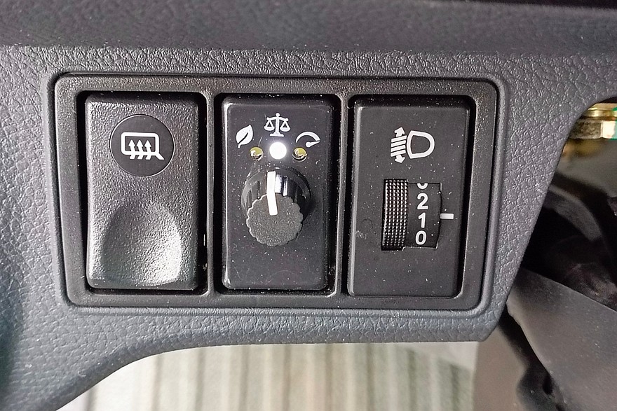 Слева от рулевой колонки — настройки режимов движения. Представляете, Sollers TR80 — это грузовик, у которого такие настройки есть. Предусмотрены, как принято, три варианта. У них нет формализованных названий, но режимы эти, судя по пиктограммам, предельно стандартные: экономичный, усредненный (средневзвешенный) и динамичный.