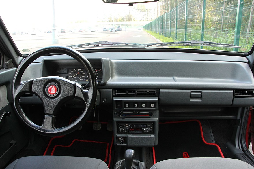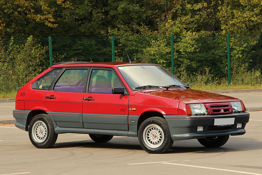 Что могло быть круче вишневой ВАЗ-2109 на стыке 80-х и 90-х годов? Только «девятка» с заветной припиской «реэкспорт». В том, что экспортные машины были не такими, как для внутреннего рынка, определенно есть доля правды. Конечно, никаких спецконвейеров, двойной толщины металла, сборки под присмотром КГБ и других продуктов воспаленной фантазии в реальности не существовало. А вот оснащение машин действительно могло отличаться, и разительно. Причем это уже заслуга заграничных дилеров, которые щедро дооснащали наши модели всеми возможными опциями. Доходило до того, что появлялись уникальные модификации. И Lada Samara Top, доработанная силами немецкого импортера Deutsche Lada, как раз из этой коллекции. Мы разыскали экземпляр 1989 года не только в прекрасном состоянии, но и сохранивший все атрибуты «Топовой» версии нашей Самары. Отличить «Топ» нетрудно уже издалека по характерному обвесу. Немцы поставили свои бамперы с развитыми юбками, а передний еще и дополнен противотуманными фарами. На боковинах появились пластиковые накладки, как и на порогах. Венчают цельную картину литые диски Melber и спойлеры на пятой двери. Причем последние носят не только декоративную функцию, но и практическую – если кто помнит, пятую дверь Самары моментально закидывает грязью. Одной из черт экспортных Лад всегда было великое множество разных шильдиков. Как бы то ни было, выглядит такая «девятка» и сейчас классно. А уж какую зависть на наших дорогах такой автомобиль мог вызвать тридцать лет назад, можно только гадать. А что у нас в салоне? Здесь своя велюровая обивка сидений и вставки на дверях, а также хваткий трехспицевый руль. По идее, должен быть еще и люк, но далеко не все немцы готовы были на него раскошелиться, и наш экземпляр принадлежал как раз такому прижимистому герру. У «низкой» панели типичный дизайн для середины 80-х годов. Единственное отличие от машин для внутреннего рынка — модный трехспицевый руль. У «низкой» панели типичный дизайн для середины 80-х годов. Единственное отличие от машин для внутреннего рынка — модный трехспицевый руль. Приборная панель довольно удобна и информативна за одним исключением – нет штатного тахометра. Это упущение исправили с появлением скрипучей «высокой панели». Отопителя с лихвой хватает для небольшого салона. Этот блок дожил до 21-го века. Слабым местом передних сидений всегда был каркас спинки. Со временем он ломался. Зато появилась бесступенчатая регулировка, которой не было у Жигулей. На втором ряду маловато места, особенно для ног. А узкий проем затрудняет посадку. Тем, кто называет нынешние смартфоны громоздкими Зато про импортный кассетник не забыли. И олдскульный Philips по-прежнему отменно мотает пленку! Может, это игры разума, но, сидя в знакомом интерьере с низкой панелью, мне кажется, что и воздух тут остался с тех времен. Так и хочется нацепить джинсовку со стоячим воротником, запихнуть кассету с Кино или «Депешами» и отправиться куда глаза глядят. Тем более что делает это «девятка» очень легко. И вот тут принадлежность к какому-то рынку уже ни при чем. Первое семейство переднего привода из Тольятти и сейчас готово дарить истинное удовольствие за рулем. А на момент выхода «восьмое» семейство и вовсе было среди эталонов класса. Точные реакции, кристально честная обратная связь и абсолютная предсказуемость – качества, к