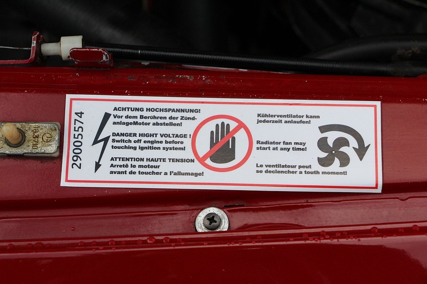 Отличие любой реэкспортной машины — информационные подкапотные таблички на разных языках.