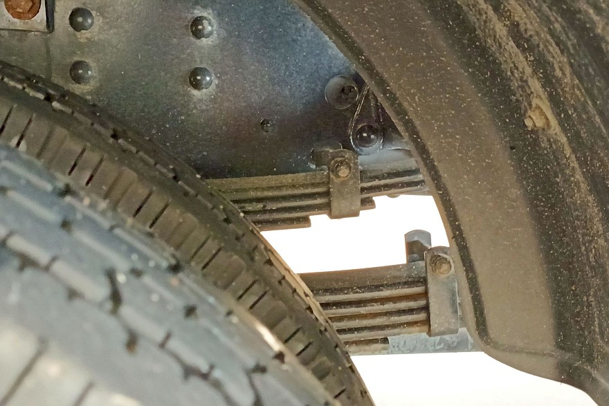 Подвески у Forland 8 рессорные со стабилизаторами поперечной устойчивости. На заднем мосту – двойные рессоры по семь и восемь листов, на переднем – одинарные, с четырьмя листами. Технически допустимая нагрузка на переднюю ось составляет 2885 кг, на заднюю – 5105 кг. Фактически же, по утверждению поставщика, задняя ось способна выдержать до 6400 кг, передняя – до 3600 кг. То есть в совокупности порядка 10 т.