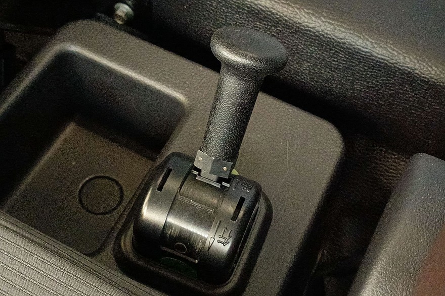 Теперь заберемся в кабину. В ней установлено подрессоренное водительское сиденье с регулируемой жесткостью. Не проведя необходимых настроек, я отправился в поездку, и уже на первом же «лежачем полицейском» сиденье с грохотом ударилось об основу. После регулировки жесткости под вес подобные инциденты не повторялись.