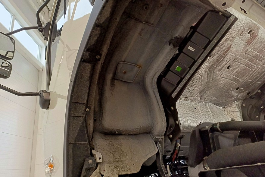 Как и положено, автомобиль адаптировали под российские условия эксплуатации. Кабины машин для нашего рынка имеют лакокрасочное покрытие с толщиной, увеличенной до 110-120 мкм. Они получили дополнительное утепление и шумоизоляцию: под днищем над двигателем размещен специальный кожух из плотного материала с отражающим слоем. А находящиеся рядом колесные арки покрыты антикором.