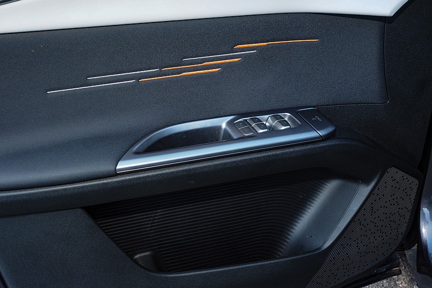 Особых претензий к базовой эргономике у меня нет, хотя при росте 182 см мне пришлось отодвинуть кресло назад до упора. И несколько моментов совсем не понравились. Во-первых, макушку отделяет от потолка какой-то сантиметр – маловато будет. Во-вторых, как только закрываешь дверь, появляется ощущение тесноты. Похоже, центральная консоль получилась слишком широкой для такого кузова. Выглядит-то эта консоль с шестиугольными окантовками подстаканников неплохо, но есть ощущение, что она не рассчитана на салон такой ширины. Наконец, есть проблема с левым локтем, который некуда упереть: «подоконник» расположен слишком высоко, а подлокотник – слишком низко.