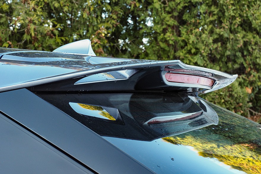 Без изменений остались и «парящая крыша» (этот эффект создают чёрные накладки на задних стойках крыши), и резкие подштамповки на верхнем уровне крыльев, да и общая пластика боковин практически не изменилась. А вот оформление как передней, так и задней части автомобиля поменялось весьма радикально. С одной стороны, конструкторы сохранили «двухэтажную» схему размещения передней светотехники: узкие дневные ходовые огни – на стыке крыльев с капотом, фары головного света – отдельно, на уровне облицовки радиатора. ДХО изменили форму и теперь выглядят, как два стремительных росчерка, а фары спрятались в отдельные ниши, которые поначалу можно принять за воздухозаборники. Вот только противотуманные фары исчезли. Не уверен, что это правильное решение.