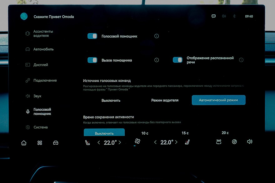 Система голосового управления в автомобиле есть, и она даже работает. Но поскольку «облачной» системы обработки голосовых команд не предусмотрено, вам обязательно придётся столкнуться с тем, что «электрическая женщина» не вполне вас понимает или понимает как-то не так. Скажем, командуешь: «Привет, Омода! Понизь температуру на один градус!» «Поняла, исполняю», – отвечает автомобиль и… выставляет охлаждение на максимум. При этом система действительно поняла, кто именно дал команду, водитель или передний пассажир, и меняет температуру именно в этой зоне. А вот команда «открой люк», например, выполняется безукоризненно.