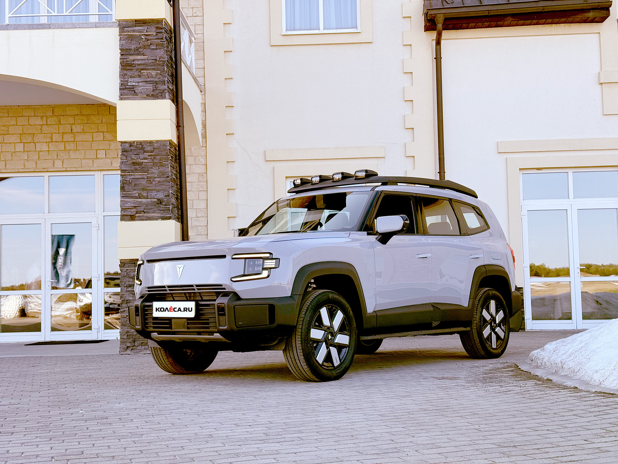 Что интересно, на фото кроссовер выглядит компактным, однако это довольно крупная машина: 5010×1985×1960 мм, пусть длина и указана с учётом полноразмерной запаски. Колёсная база – 2880 мм. На крыше есть массивный багажник, который выдерживает 80 кг, но гораздо больше внимания привлекают четыре диодных прожектора на его переднем торце. Внешняя пара включается вместе с дальним светом, а внутренняя – только в режиме кемпинга.