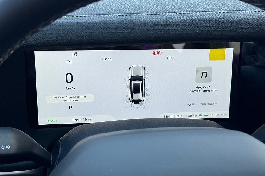 А вот с динамикой не всё так однозначно. Нет, конечно, тяга здесь по-электромобильному линейная, но даже в спортивном режиме силовой установки отклик на резкое нажатие педали тока сильно сглажен – Дипал не заставит водителя биться затылком о подголовник. Разгон здесь скорее про уверенное «поехали», чем про драматичное «ну, держитесь». А при падении заряда батареи примерно до 25% кроссовер заметно теряет резвость, пока снова не напитается электричеством. Разъём для зарядки – китайский GB/T.